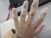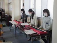受付後、保護者の方1名が教室に入り、お迎え場所を確認して説明を聞きます。教科書やプリントなど、たくさんの荷物がありました。体育館では、もう一人の保護者の方が静かに待機していました。