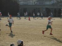 空は曇っていましたが、4年生が運動場でサッカーの練習をしていました。今日もゴールが大活躍。二人でパスをしながら進み、何度もシュートを打っていました。