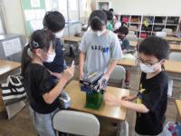 算数の時間、1年生は、数え棒を使って「かたち」を作り楽しみました。みんなが考えないような形を作ろうと、子供たちは一生懸命考えていました。できた形は、どんどん写真を撮って記録しました。タブレットを上手に使っています。