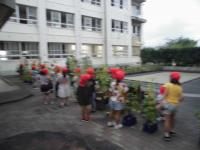 最近雨がよく降るためか、運動場に草が元気よく生えています。来月ある運動会に向けて、6年生が草引きをしてくれました。雨の後だったので抜きやすく、あっという間に運動場がきれいになりました。