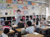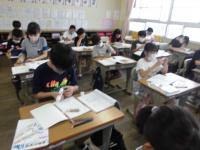 6年生の外国語では、夏休みの思い出を英語で表現し、紹介し合いました。行った場所や食べたもの、その時の気持ちを簡単な英語の文章で書いていました。6年生、頑張っています。