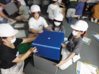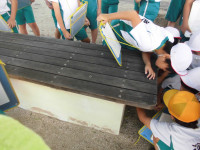 エプロン縫いに奮闘中の5年生です。うまく縫えた!と思いきや、間違ってしまっていたことに気付き、リッパーで糸を外すことになった児童がちらほら見受けられました。がっかりしながらも、友達にも協力してもらい、気を取り直してまたチャレンジです。
