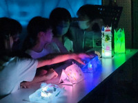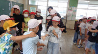 また、実際にバルーン投光器を照らしてみたり、簡易トイレを組み立てたりしました。子供たちは、投光器の明るさに驚いたり、子供たちだけで簡単に組み立てられ、丈夫な簡易トイレに感心したりしていました。