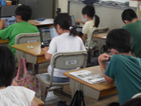 「Do you have~?」と、文房具類を質問し、「Yes, I do.」 「No, I don’t.」で答える練習をしています。みんな、言いたくて言いたくて、たくさん手が挙がりました。