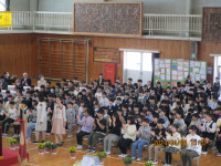 5月23日の始まりです。元気に登校してきています。玄関に入る前に、一人一鉢に水やりを欠かしません。ボランティア委員会はアルミ缶回収を、体育委員会はグランドの整備を、とそれぞれの学校での朝の活動が始まっています。