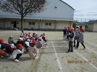 本時のメニューは、集団行動(並び方)と、リレー(じゃんけんリレー・
